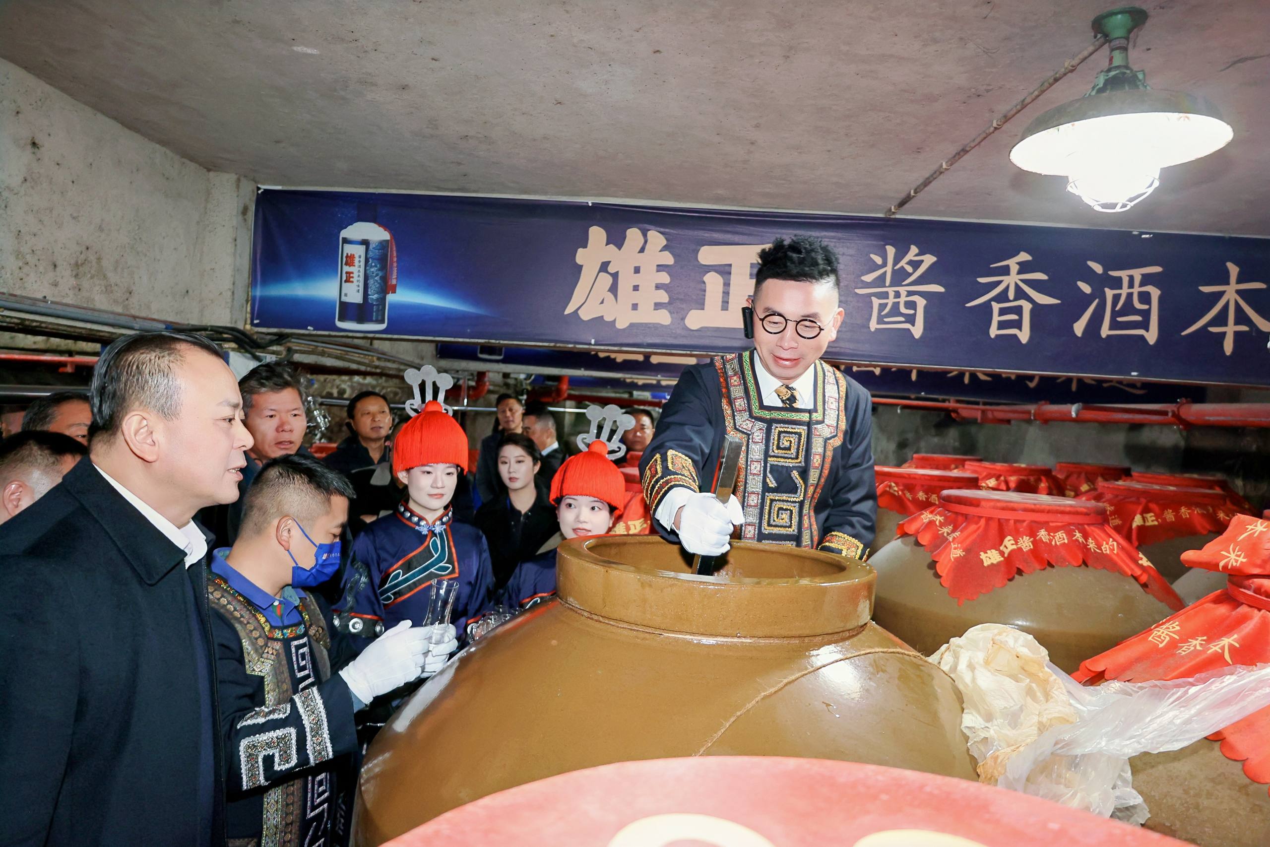 在工作人员的带领下,大家依次参观了酿酒车间、酒窖等场所。酿酒师傅们熟练地操作着各种酿酒设备,展示着仡佬族传统的酿酒技艺。从原料的选择到发酵的过程,再到蒸馏和储存,每一个环节都严格把关,确保每一瓶雄正都是“酱香酒本来的味道”。 据《史记》记载,公元前135年,仡佬族酿出了第一坛酱香酒。雄正是仡佬族唯一非遗传承下来的一瓶酒,每一瓶雄正酱香酒都由仡佬族酿酒技艺唯一非遗传承人张再彬先生亲酿调制,是“酱香酒本来的味道”。 活动中,雄正酒业集团创始人、仡佬族酿酒技艺非遗传承人张再彬先生与企业家们亲切交流,并表示“仡佬族酿酒技艺是民族千年的智慧结晶,是雄正品牌根基。未来雄正会继续深耕非遗文化,加大研发投入提升产品品质、拓展国内外市场,加强品牌建设,成为有国际竞争力的民族品牌。” 随后举行的仡佬族祭祀封坛仪式庄重肃穆。非遗传承人诵念祭文,感恩天地馈赠,祈愿国泰民安。企业家们净手焚香,遵循古礼,将亲自挑选的酒坛缓缓封存。封坛仪式不仅是一种传统习俗,更被赋予了文化传承的时代意义。每个封存的酒坛都将记录企业家的姓名和封存日期,成为连接个人记忆与品牌历史的特殊载体。 夜幕降临,华灯初上。企业家们欣赏融合传统与现代的无人机、光影秀,体验仡佬族特色篝火晚会。三日的探源之旅在此刻达到情感高潮,企业家们纷纷表示,这次旅程让他们重新认识了贵州,也重新认识了“雄正,酱香酒本来的味道”——一个既有历史厚度又有时代温度的匠心品牌。